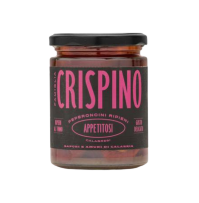 Calabrian chili peppers stuffed with tuna and artichokes in oil, for a tasty appetizer with a Mediterranean character.