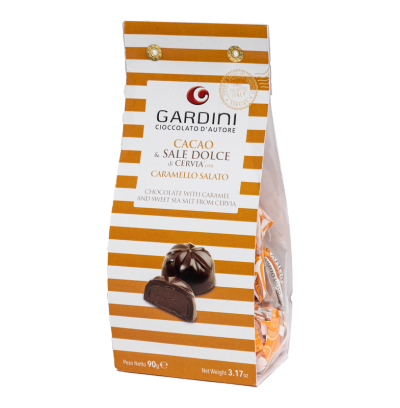 The outer layer is a crunchy coating of milk chocolate, while the filling combines a caramel cream with a delicate touch of Cervia sweet salt. A perfect balance.